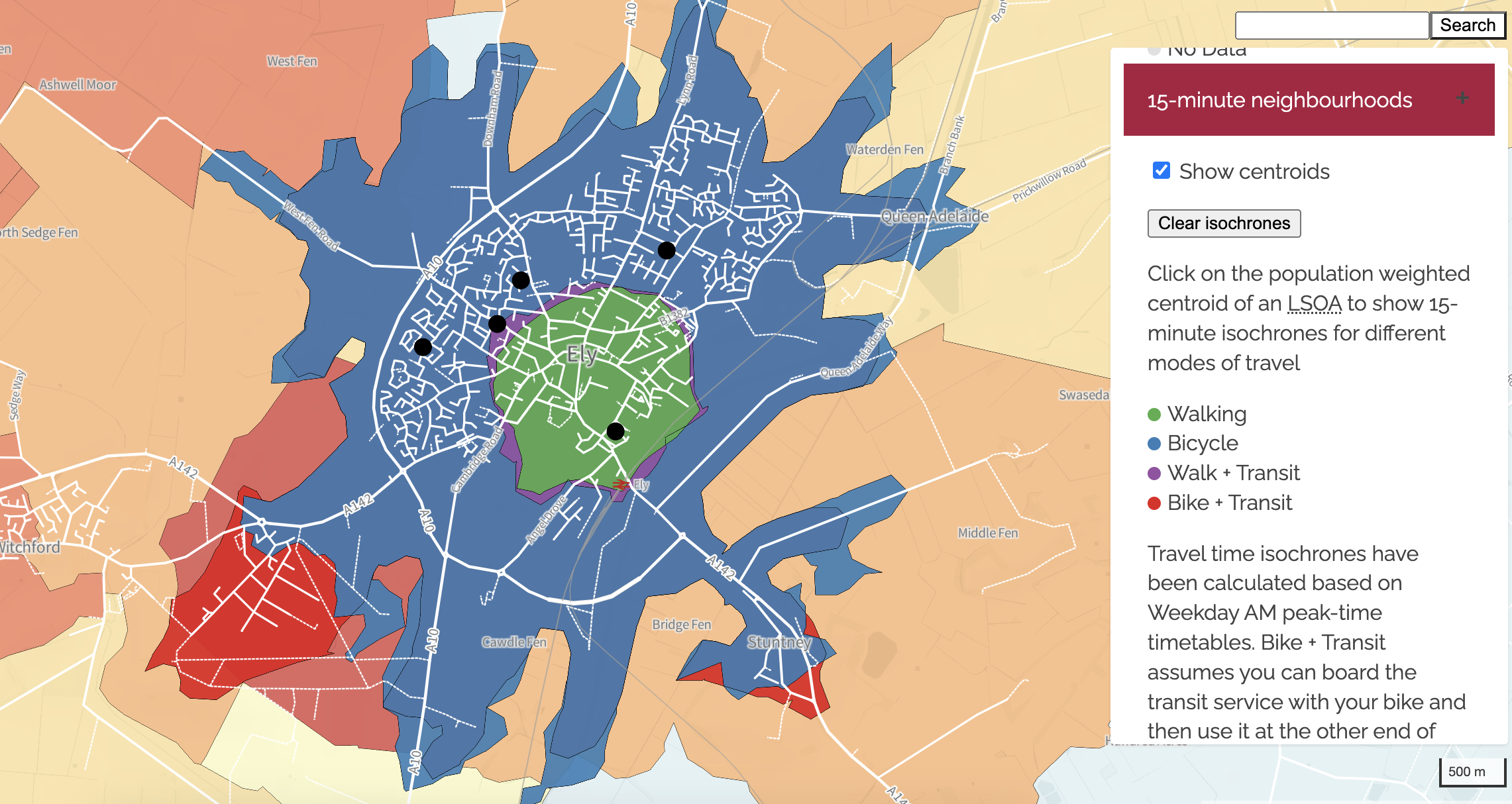 Click on this to get 15 minute mapping for movement from that point using a range of transport options.